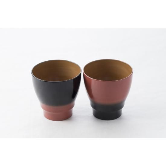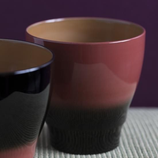 漆器には珍しい黒と桃色のグラデーションコンビは、大人な雰囲気を纏ったデザインです。カップ2個ペアのギフトセットは、大切な方への冬の贈りものにおすすめです!