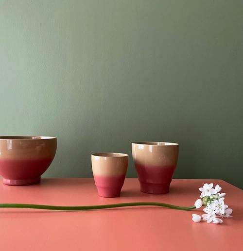 シックであたたかみのある桃色や青色、グラデーションなど、豊富な色彩の器は