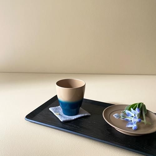 従来の漆器とは精製技法が異なる特殊な本漆(マルチロール漆)を採用。低粘度かつ乾燥が早い性質から、取り扱いは素早く丁寧に塗る職人にかぎられるとあり、その作業はjcocomoの漆器を担う熟練した職人達に委ねています。朱や黒だけではなく新たな色づくりや食洗機に対応できる可能性を模索しつづけ、最終的な商品化までに費やした時間はおよそ8年。「視覚的にも機能的にも新しい感覚」。それがjcocomoの漆器です。