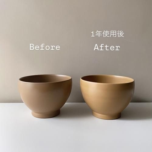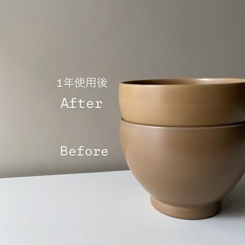 漆を塗り仕上げた直後の漆器は暗く沈んだ色をしておりますが、漆の色は空気や光にふれていくうちに明るく変化します。レザー製品やアンティーク家具のように使いながら“漆を育てる”愉しみは長く付き合える醍醐味の一つ。漆の特徴でもあるエイジング(色の変化)をお愉しみください。